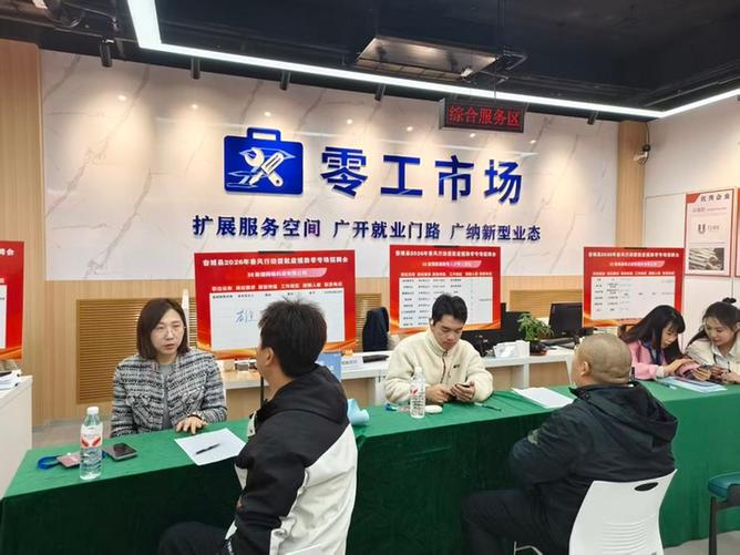 回迁居民在容东零工市场举办的专场招聘会上咨询岗位情况(2026年3月摄)。(受访者供图)